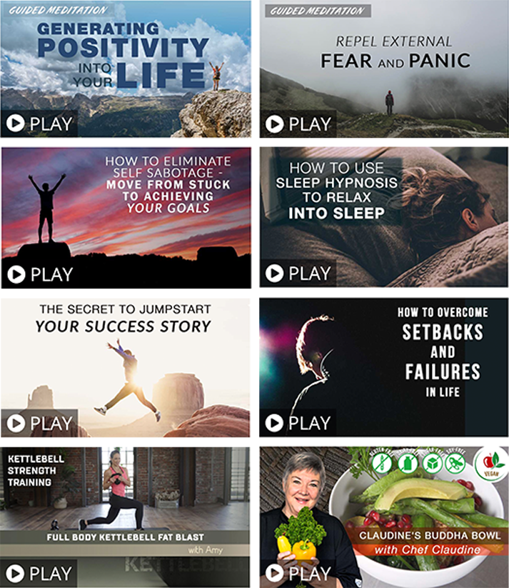 • Browse through "Become your Best Self", "Unleash your Inner Power", "From Stress to Bliss", and other shows our experts have created to help you stay strong, focused, and calm;